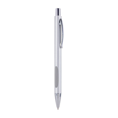 Boligrafo con grip antiderrapante en los costados. Mecanismo pulsador. Incluye estuche.