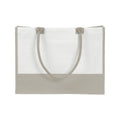 Bolsa de lona de algodón de 10 onzas, fuelle de 15 cm y con detalles de color en la base, laterales y asas reforzadas. En la parte frontal tiene una franja en color lo que le da un toque original y con estilo.Las asas están especialmente reforzadas para soportar un peso considerable y garantizar una experiencia de transporte cómoda y segura.