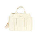 Bolsa fabricada en lona de algodón, conocida también como canvas, material resistente y fácil de lavar. Esta bolsa cuenta con dos asas firmes para usarla como bolsa de mano y con un asa ajustable para usarla como bolsa al hombro. Cuenta con bolsas externas sin cierres para guardar objetos más pequeños y tener fácil acceso a ellos.