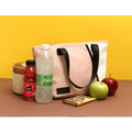 Bolsa hielera fabricada en poliéster y papel aluminio, con cubierta de curpiel, diseño bicolor. Incluye dos asas y cierre metálico.
