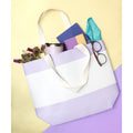 Bolsa de mano fabricada en tela de algodón y poliéster. Incluye dos asas y diseño a rayas. Su espacio y diseño son óptimos para guardar diversidad de objeto. Su diseño en colores primaverales le hace vistosa.