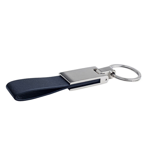 Llavero metálico con correa de curpiel.