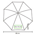 Paraguas de bolsillo en poliéster con 8 gajos, con lindo detalle color blanco al borde del mismo y en la parte inferior, con asa en la parte de mango (el cual es retráctil) para colgarlo y para mayor comodidad al momento de almacenarlo o transportarlo. Incluye funda, esta misma tiene un detalle color plata en la parte superior.