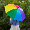 Paraguas de 8 paneles, cada panel de un color. Sistema manual. Mango de esponja. Su diseno arcoiris, colorido y alegre refleja la diversidad y la inclusividad.