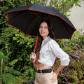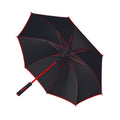Automatico. 8 Paneles y mango de plastico. Marco de fibra de vidrio y bies de color que hacen juego con el marco y el mango. Incluye funda con agarradera.