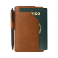 Funda de curpiel para pasaporte. Incluye un libreta de 32 hojas a raya, un bolígrafo de tinta negra y un práctico compartimento para tu pasaporte. Ideal para viajes y notas rápidas.