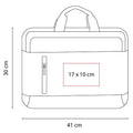 Bolsa principal con cierre y espacio para laptop de 15", organizador y bolsa interna con cierre, 2 bolsas frontales con cierre y aditamento especial trasero para colocar en trolley. Incluye correa ajustable y desmontable. Asas de agarre superior.