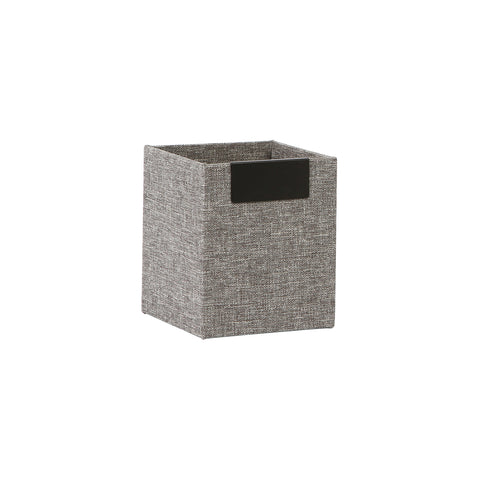 Portalápices de diseño cuadrado fabricado en material RPET 300D, con detalles cromados.