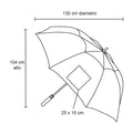 Paraguas antiviento con apertura automática, 8 gajos, mango de EVA y doble broche de velcro. Incluye funda con agarradera.