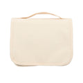 Estuche para viaje de poliéster con 1 compartimento principal con cierre y bolsa al interior, 2 compartimentos con malla, 1 compartimento transparente, gancho de plástico, asa y compartimento trasero.