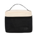 Lonchera con interior metalizado, cierre, etiqueta de curpiel y asa superior.