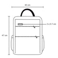 Mochila de 1 compartimiento, espacio para laptop max. de 16 pulgadas. 2 bolsas frontales, 2 bolsas laterales, asa de aluminio y tirantes acojinados. Incluye entrada interna para batería portátil y placa metálica.