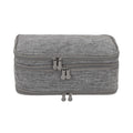 Set de viaje con 3 compartimentos, 4 organizadores elásticos, 5 organizadores de plástico de diferentes tamaños y asa.