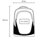 Mochila de 3 compartimentos con respaldo y correas ajustables acolchonados y dos mallas laterales.