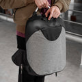 Mochila de poliéster con candado de seguridad, asa de aluminio, 1 compartimento para tarjetas, 2 compartimentos laterales, 2 cintillas adaptables para maleta, compartimento para laptop max. de 16 pulgadas, entrada interna con puerto de carga USB, organizador interno de 8 compartimentos respaldo y tirantes acojinados.