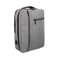 Mochila funcional con compartimento de seguridad, porta laptop de 17", compartimento secundario con resortes para ropa, malla, cierre interior, 2 bolsas frontales y puerto para carga USB.