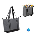 Hielera rectangular con 2 compartimentos, asas superiores, interior impermeable plastificado y cierre.