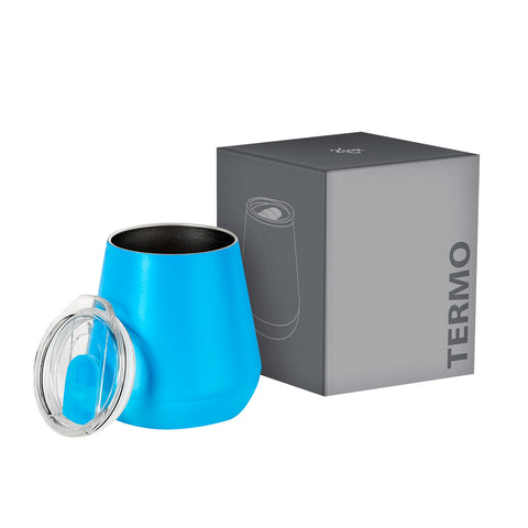 Termo doble pared. Cerrado al vacio. Pared interna y externa de acero inoxidable. Tapa de plastico con sistema push y valvula de seguridad. Cuerpo con terminado rugoso. Su estructura ligera y ergonomica facilita su traslado, mientras que sus colores brillantes, le anaden un toque de personalidad. Mantiene la temperatura caliente por 6 hrs y la temperatura fria por 8 hrs. Capacidad de 9 Oz. Incluye caja individual.