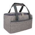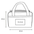 Lonchera de interior térmico con bolsa de malla en el interior, 1 bolsa frontal con cierre y dos asas reforzadas con botón.